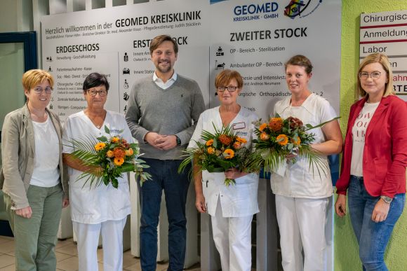 Drei unserer Mitarbeiterinnen begehen ihr 25- bzw. 40-jähriges Dienstjubiläum. Darauf sind wir als GEOMED-Kreisklinik sehr stolz.